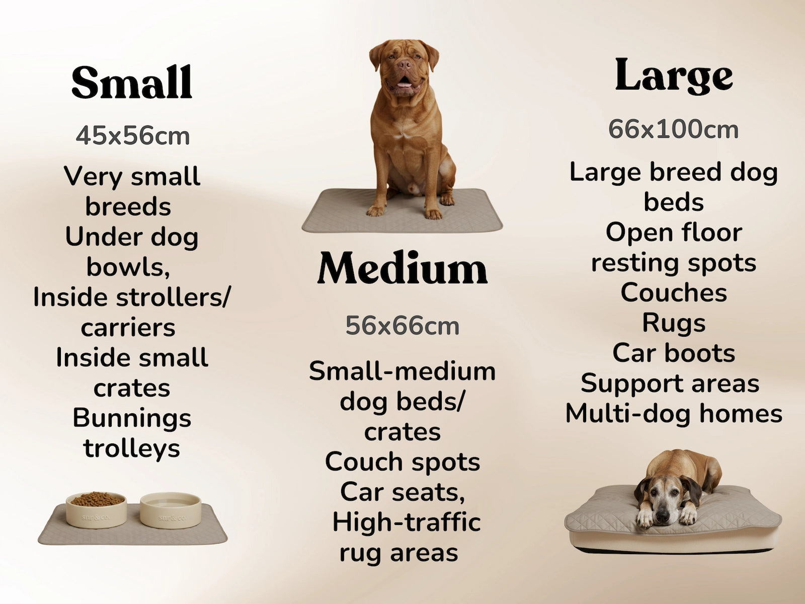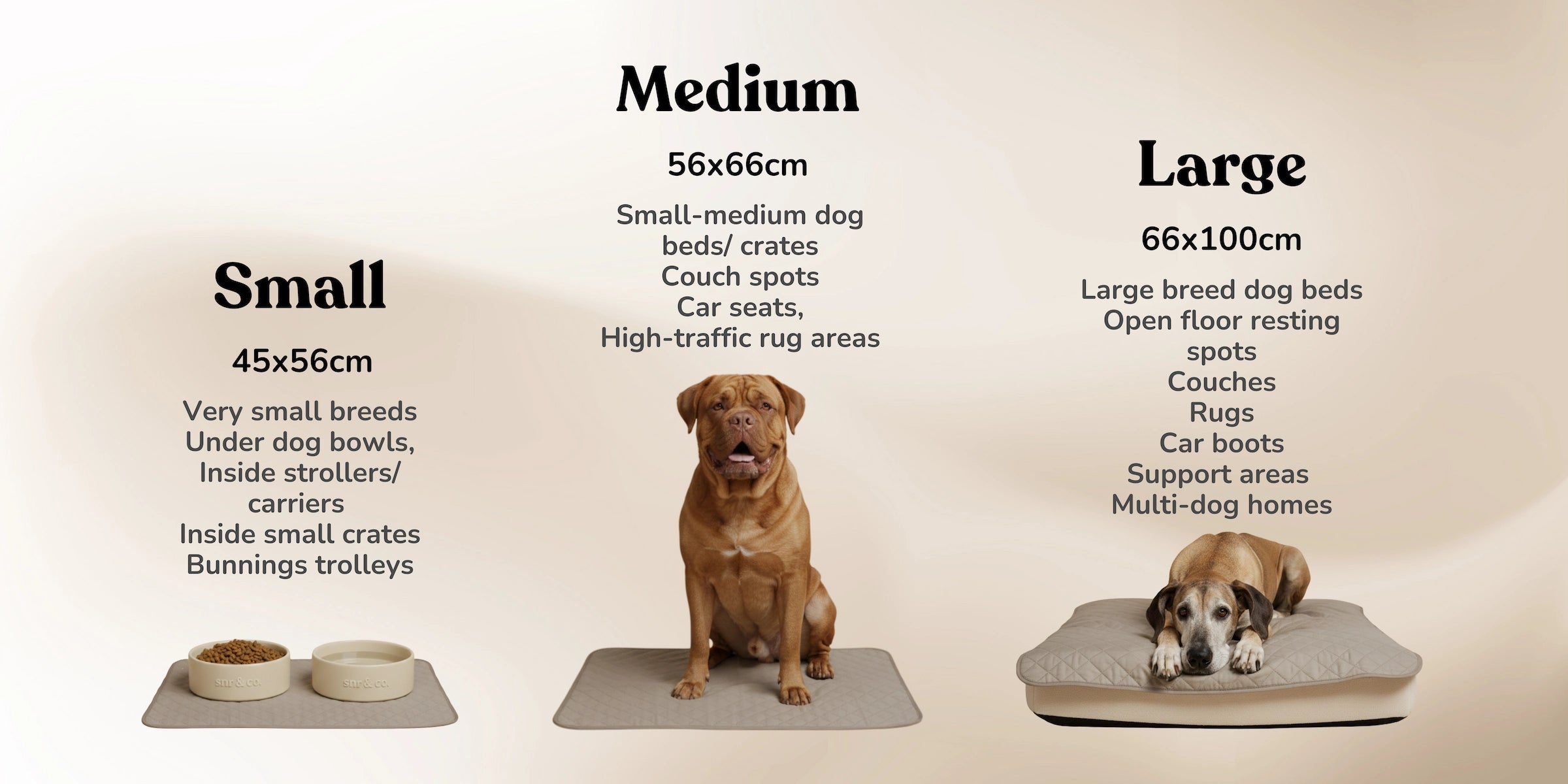 Our mixed-size bundles pair different mat sizes together so you can care for your dog’s needs across your home — from beds and sofas to bowls, entryways, and favourite resting spots — with a cohesive, considered look.